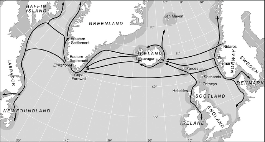 (Roesdahl 1998; Wallace 2003; Eiríks saga rauða; Logan 1991; Marshall 1996)